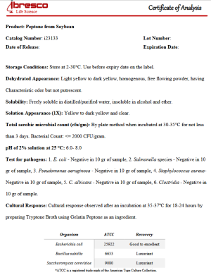 Peptone from Soybean; Pancreatic Digest of Soybean Meal